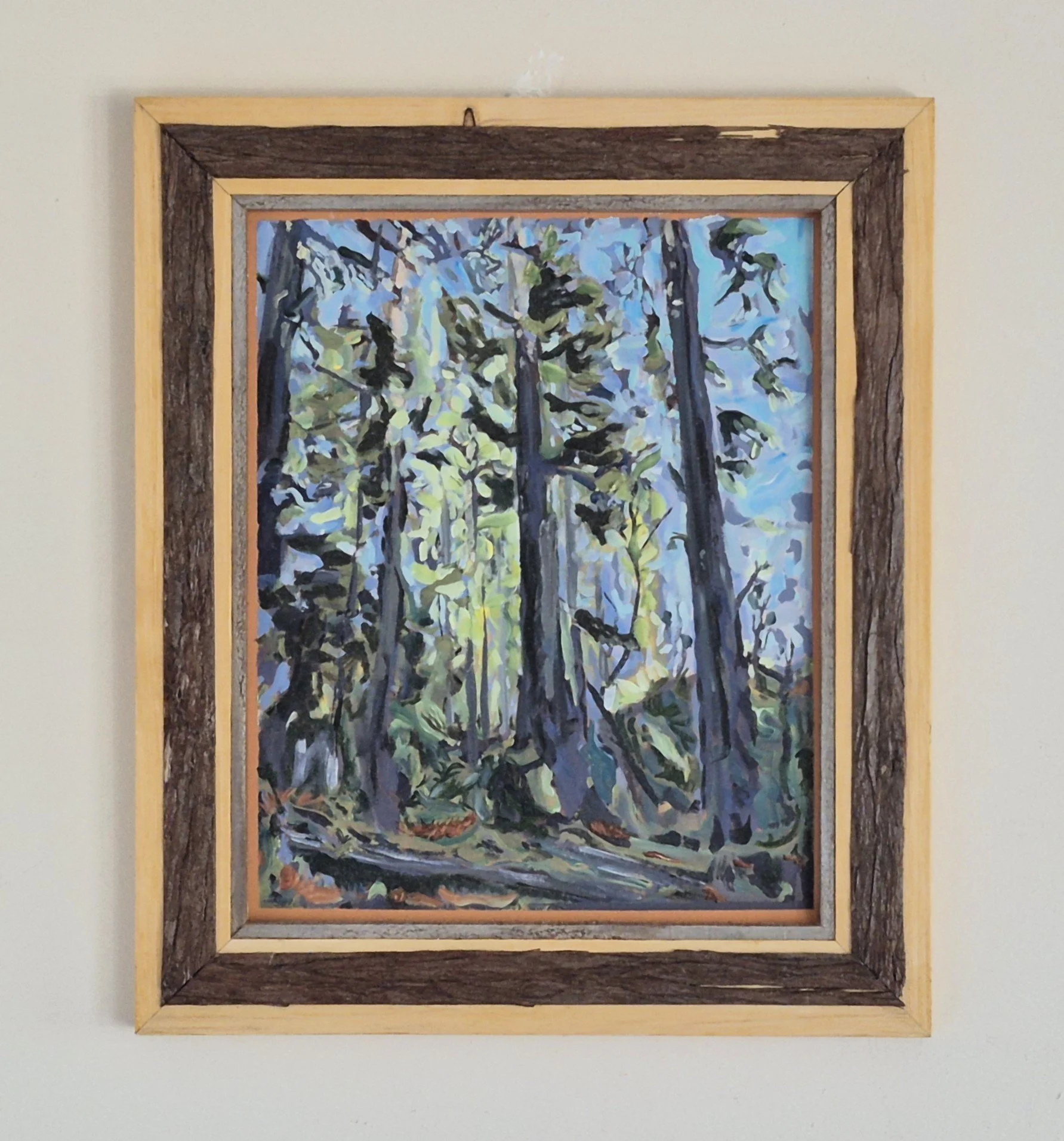 Backlit Cedars framed with Cedar bark on pine, finish applied