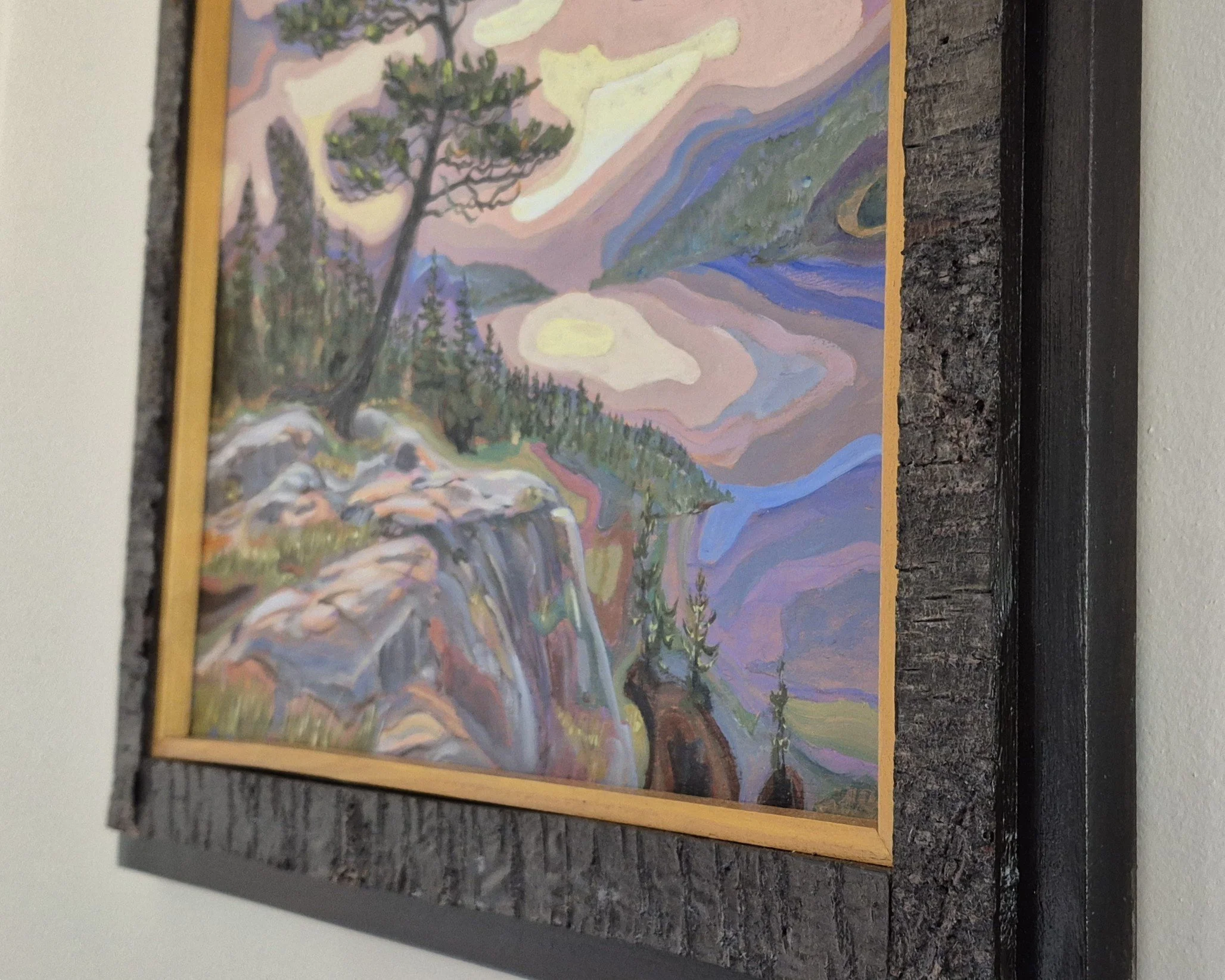 Framing included: Handcrafted frame with Cherry bark laminated on pine strips
